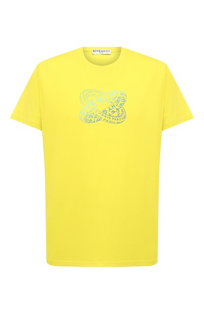 Одежда желтых оттенков — как витаминный коктейль. Например, цвет спелого лимона у футболки из коллекции сезона осень-зима бодрит не хуже цитрусового фрэша и заряжает оптимизмом в пасмурный день. Прямую модель сшили из мягкого эластичного джерси. Спереди изделие украсили двумя переплетенными кольцами с объемным эффектом. Рисунок сопроводили повторяющимся логотипом бренда, основанного Юбером де Живанши.