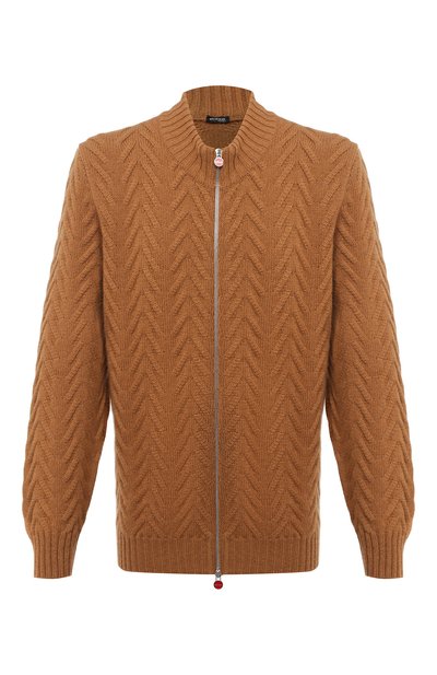В системе координат Kiton две оси: качество и стиль, не подверженный времени. С соблюдением этих принципов дизайнеры марки выполнили и этот светло-коричневый кардиган из осенне-зимней коллекции. Модель связали фактурными арановыми узорами из нежного длинноволокнистого кашемира. У этого материала много достоинств, но главное – он греет лучше обычной шерсти, прочнее ее и легче.