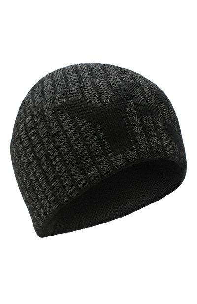 У темно-серой полосатой шапки минимум деталей. Подчеркнуто широкий отворот с крупным черным узором в виде логотипа бренда достаточно плоский, он не нарушает линии силуэта. Для изготовления аксессуара мастера марки использовали мягкий тонкий материал с шерстью.
