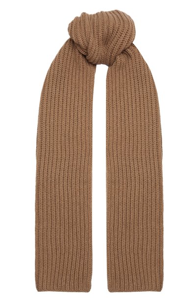 При создании шарфа деликатного бежевого оттенка дизайнеры марки сделали ставку на комфорт. Для производства модели использовали нежный мягкий кашемир. Пряжу изготовили из почти невесомого пуха г орных коз, вычесанного вручную и очищенного от грубых волокон. Материал не только теплее, но и приятнее на ощупь обычной шерсти.