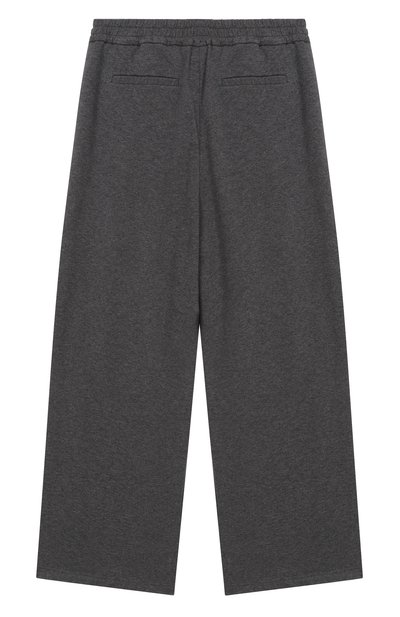 Несмотря на универсальный цвет и рельефные стрелки эти серые брюки могут не вписаться в школьный наряд, но удачно дополнят менее формальный образ. Модель с манжетами сшили из мягкой ворсовой шерсти, которая хорошо удерживает тепло. Акцент на лампасах сделали с помощью вышивки в цветах фирменной ленты Web.