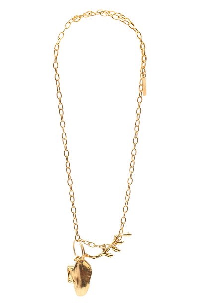 Для изготовления украшения мастера марки использовали прочный ювелирный сплав с золотым гальваническим покрытием. Цепочку с крупными звеньями украсили кулоном с фигурными подвесками, вдохновленными природой. Модель, длину которой удобно регулировать, одинаково гармонично дополнит и повседневный образ, и декольте нарядного платья.