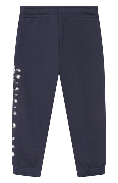 Мастера марки изготовили черные джоггеры из мягкого тонкого хлопкового трикотажа. Характерное переплетение нитей позволяет воздуху свободно циркулировать, а нити стрейч в составе делают этот приятный на ощупь материал прочнее. Для декора модели выбрали крупный белый логотип бренда.