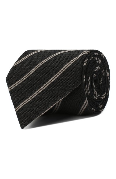 Чтобы образ выглядел гармонично, наши стилисты предлагают сочетать полосатый черный галстук с пиджаком с широкими лацканами. Для пошива аксессуара мастера марки использовали мягкий тонкий шелк с добавлени ем прочных шерстяных нитей. Благодаря такому сочетанию материал быстро восстанавливает форму после развязывания узлов, поэтому изделие не требует особенного ухода.