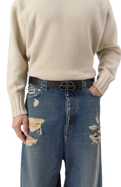 Черный ремень средней ширины подружится с джинсами или снизит градус формальности прямых брюк со стрелками. В этом ему поможет крупная пряжка оттенка состаренного серебра, выполненная в виде BB-монограммы. Аксессуар изготовили из прочной матовой кожи, которая не деформируется со временем, поэтому он прослужит не один сезон.