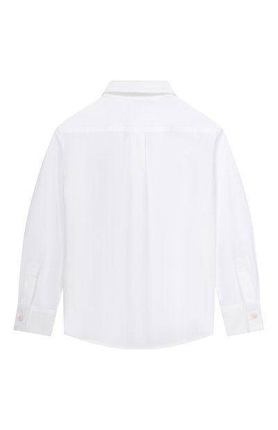 Белоснежное поло с длинными рукавами мастера марки выполнили из гладкого хлопкового трикотажа. Одежда из такого нежного на ощупь материала не мешает воздуху свободно циркулировать, не раздражает кожу и не сковывает движения. Модель дополнили небольшим нагрудным карманом в тон.