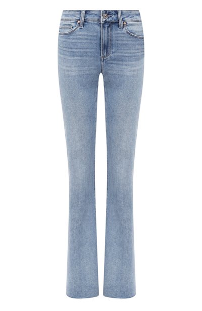 В создании расслабленного повседневного образа у джинсов нет равных, особенно, когда речь идет о такой удлиненной модели из коллекции сезона весна-лето. Для пошива расклешенной от колен вещи использовали плотный неоднородно окрашенный хлопок с добавлением полиэстера и спандекса. За счет них материал немного тянется, а изделие не стесняет движения. Четкий срез брючин намеренно не обработали.