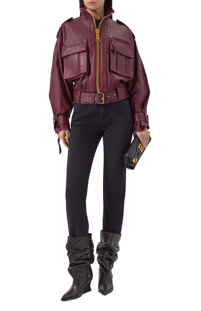 Джорджио Армани вывел куртку из коллекции сезона осень-зима на новый уровень за счет комбинации материалов. Модель сшили из бархата винного оттенка на основе вискозы, глубина и фактура которого подчеркивается черной зернистой кожей с легким матовым блеском.