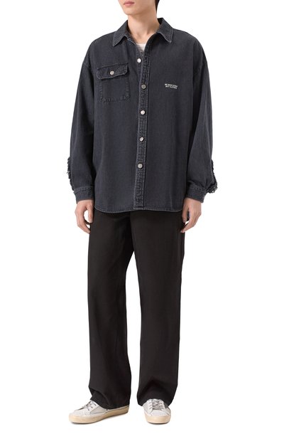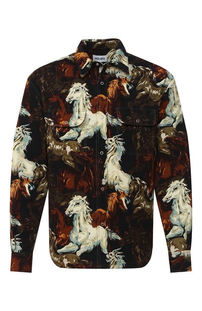 Свободную рубашку украсили мотивом с лошадьми, позаимствованным из архивов марки, основанной Кензо Такада. Для пошива модели из коллекции сезона осень-зима использовали плотный хлопок. Наши стилисты предлагают сочетать с футболкой, джинсами и челси.