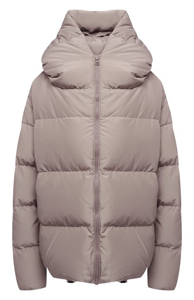 Бежевая пуховая куртка выглядит базово, но при этом выделяется своим силуэтом на фоне стандартных вариантов. У модели воротник растерял привычные черты и превратился в элемент, который незаметно встраивается между основной частью и капюшоном и в то же время добавляет объема, подобно стеганым секциям. Изделие из непродуваемого нейлона вошло в осенне-зимнюю коллекцию.