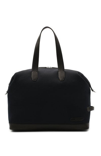 Темно-синюю сумку с отделкой из матовой кожи мастера марки выполнили из прочного текстиля, который не рвется, не промокает и легко очищается от загрязнений. Аксессуар с двумя длинными ручками дополнили регулируемым по длине съемным плечевым ремнем. Габариты модели подходят под требования к ручной клади, поэтому ее можно брать с собой в салон самолета.
