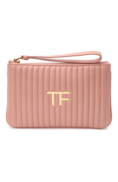 Клатч пудрового оттенка выручит и на дневном, и на вечернем мероприятии. Небольшую модель со стеганым полосатым узором Том Форд украсил только позолоченной деталью в виде монограммы и дополнил для удобства гипертрофированным пуллером петлей, благодаря которому аксессуар можно накинуть на запястье. В изделие из коллекции сезона весна-лето поместятся смартфон, наушники, помада и ключи.