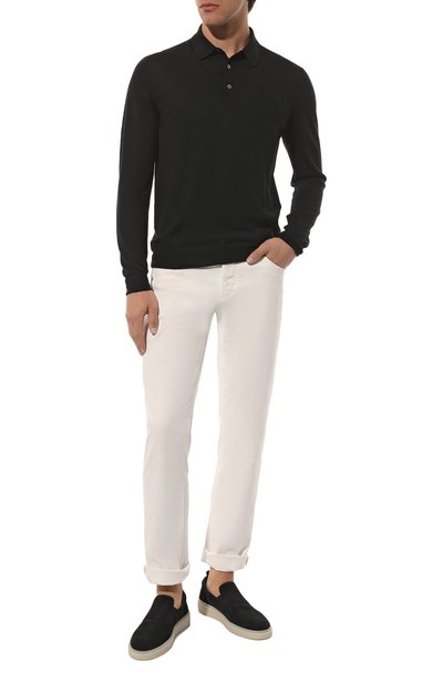 Поло, застегивающееся тремя перламутровыми пуговицами, органично дополнит базовый гардероб. Модель кроя Regular fit выполнили из трикотажа плотностью 16 петель на дюйм, связанного из мериносовой шерсти Extrafine.