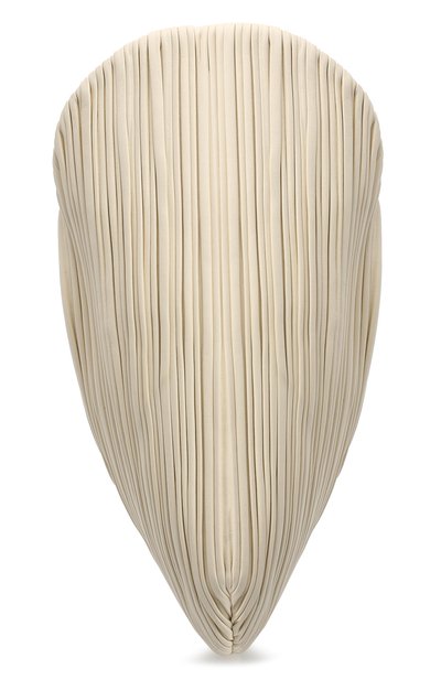 Кремовый клатч Pluto миндалевидной формы станет находкой для поклонниц нестандартных решений. Модель с фактурой, напоминающей плиссировку, изготовили из мелкозернистой матовой кожи. Аксессуар из осенне-зимней коллекции дополнили короткой ручкой-петлей. Внутрь поместятся смартфон, картхолдер и ключи.