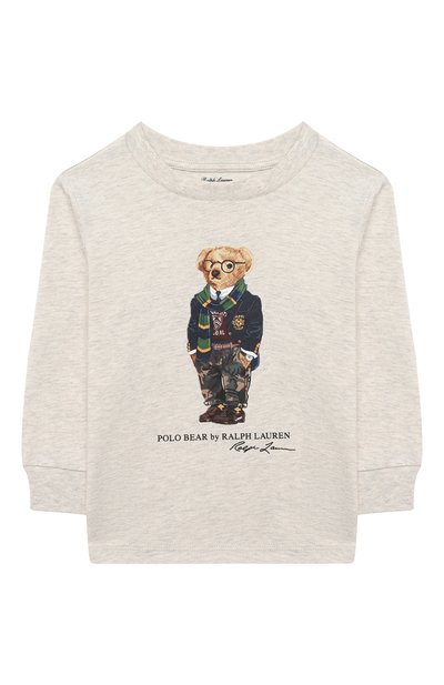 Мастера марки выполнили легкий свитшот из нежного хлопкового трикотажа. Этот гипоаллергенный материал отлично пропускает воздух и впитывает влагу, обеспечивая комфорт в течение всего дня. Меланжево-серая модель прямого кроя украшена ярким изображением медведя Polo Bear.
