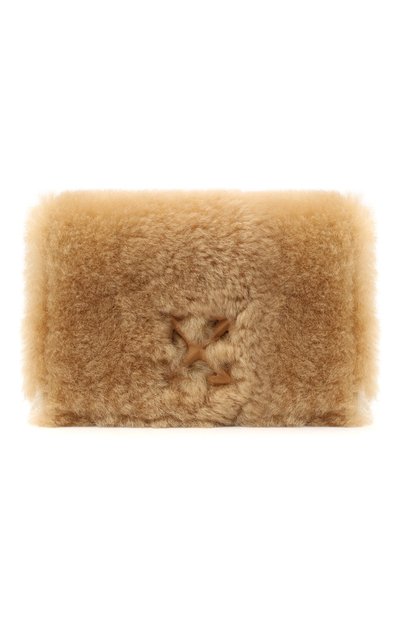 В осенне-зимнюю коллекцию вошла небольшая бежевая сумка 0.5 Jitney. Для пошива аксессуара Верджил Абло выбрал не традиционную для повседневных аксессуаров кожу, а мягкую ворсовую овчину. На широком клапане с магнитной кнопкой ‒ узнаваемая пряжка-эмблема. Плечевой ремень с вставками-цепочками в тон можно снять и носить модель как клатч.