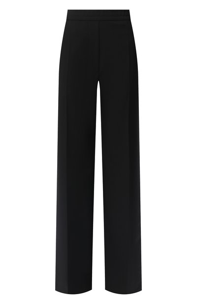 Широкие черные брюки с классической посадкой, эластичным поясом и стрелками будут уместны и в сдержанном наряде, и в расслабленном образе. По бокам и сзади — врезные карманы. Однотонная модель из коллекции сезона осень-зима сшита из гладкой легкой шерсти.