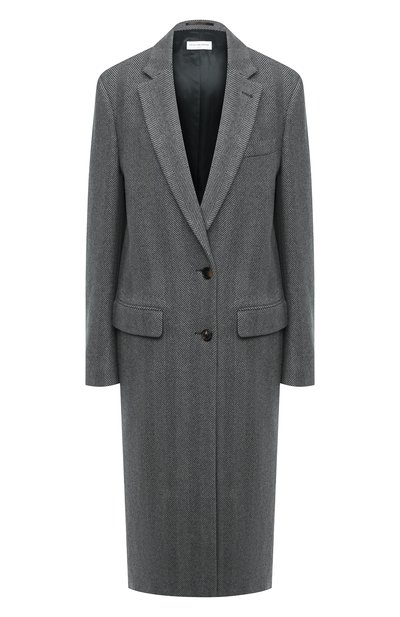 Прямой крой, акцентированная линия плеч и спокойный серый цвет — пальто из осенне-зимней коллекции выглядит предельно лаконично. Для пошива модели Дрис ван Нотен выбрал мягкую плотную ткань на основе шерсти с добавлением прочного полиамида. Переплетение волокон разных оттенков создает шевронный узор.