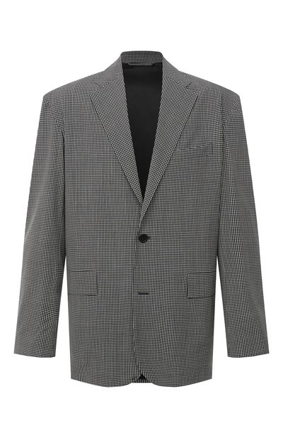 В осенне-зимней коллекции Демна Гвасалия переосмыслил классический однобортный пиджак. Вывести клетчатую серую модель на новый уровень помогли акцентированные плечи и силуэт oversize. Изделие с широкими лацканами сохраняет свежий вид в течение дня благодаря плотному шерстяному материалу с добавлением волокон нейлона и эластана. Наши стилисты предлагают носить вещь с парными брюками и белой футболкой.