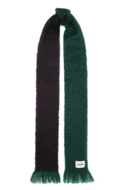 Зеленый шарф подружится и с лаконичным пальто, и с пуховиком. Мастера марки использовали для изготовления модели мягкий нежный мохер с добавлением тонкой шерсти и полиамида. Пушистый аксессуар за счет длинного ворса, образующего воздушную подушку, хорошо сохраняет тепло. Изделие с бахромой по краям украсили патчем с логотипом бренда.