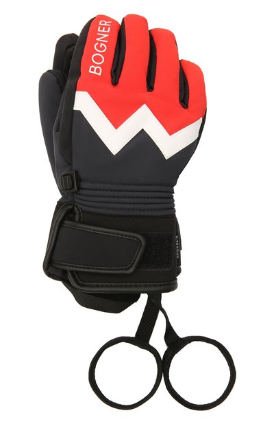 Черные перчатки с фигурными белыми и коралловыми вставками станут идеальным спутником для прогулок и игр со снегом. Для пошива модели, утепленной наполнителем PrimaLoft Gold, мастера марки использовали плотный влагонепроницаемый текстиль и мягкую фактурную кожу. Застежки-велькро надежно фиксируют аксессуар на руках.