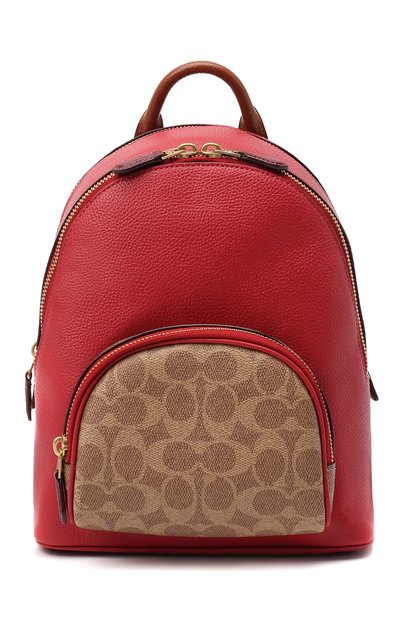 Алый рюкзак Carrie из осенне-зимней коллекции — удачная альтернатива привычной сумке в повседневном образе. Для пошива аксессуара использовали комбинацию мягкой кожи и знакового канваса с паттерном, составленным из эмблемы бренда. В изделие поместятся кошелек и смартфон. во внешний карман — ключи и помада.