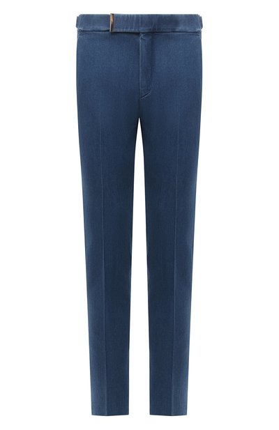 Прямые синие брюки со стрелками удачно дополнят и повседневный образ, и комплект в стиле smart casual. За рамки формального гардероба модель из осенне-зимней коллекции выводит материал. Для пошива изделия классического кроя Том Форд выбрал тонкий мягкий деним с добавлением волокон полиэстера для прочности. Посадку на талии удобно регулировать боковыми ремешками с пуговицами.