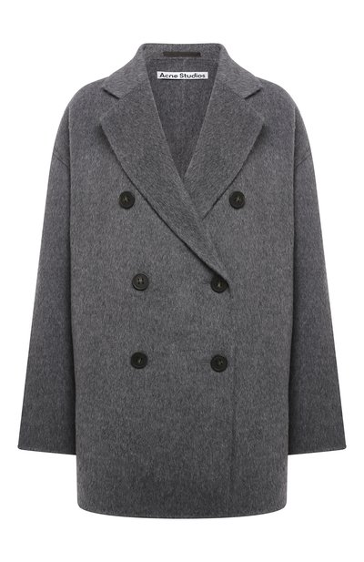 Серое укороченное пальто из осенне-зимней коллекции напоминает двубортный пиджак силуэта oversize. Для пошива изделия с крупными лацканами и спущенной линией плеч использовали плотную непродуваемую шерсть. В состав материала включили волокна альпака, поэтому изделие меньше загрязняется.