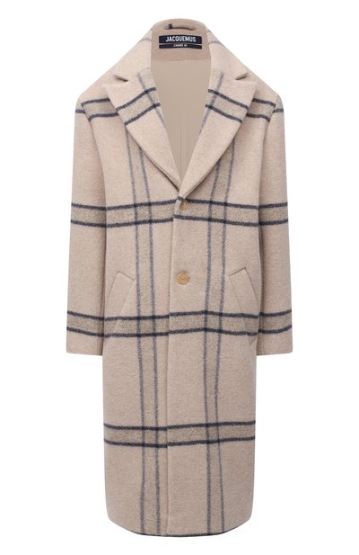 В осенне-зимнюю коллекцию Симон Порт Жакмюс включил бежевое клетчатое пальто силуэта oversize. Для пошива однобортной модели с широкими заостренными лацканами и боковыми диагональными карманами дизайнер выбрал мягкую ворсистую шерсть. Верхняя одежда из такого материала получилась легкой и при этом теплой.