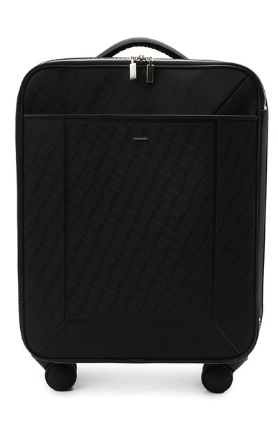 В черном чемодане получится разместить и обувь, и одежду, а важные предметы можно будет сложить в плоский отсек на молнии внутри, чтобы их было легче найти. Для изготовления модели мастера марки использовали прочный непромокаемый нейлон с геометрическим узором. Чтобы изделие было маневреннее, его дополнили ручками сверху и сбоку, а колеса сделали вращающимися на 360 градусов.