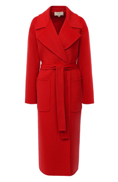 Однобортное пальто оттенка жгучего перца – простой способ ввести яркий цвет в повседневный гардероб. Оно может составить компанию как базовым вещам, так и образу, собранному в одной гамме. Для производства модели с большими накладными карманами и широкими лацканами Майкл Корс выбрал тонкую шерсть с добавлением волокон полиэстера для прочности. Вещь сшили без подкладки в технике double face, поэтому она получилась легкой и при этом теплой.