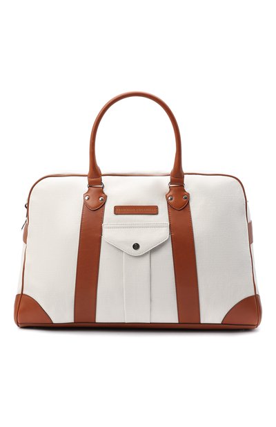 Белую дорожную сумку Urban сшили из плотной холщовой ткани. Ее, как и саму подкладку, обработали водоотталкивающим составом, поэтому такая модель защищает вещи от влаги и легко очищается от загрязнений. Основной материал противопоставили вставкам из коричневой гладкой кожи. Эти детали играют не только эстетическую роль, но практичную роль — делают изделие прочнее. Для смартфона и ключей снаружи предусмотрели два плоских кармана.