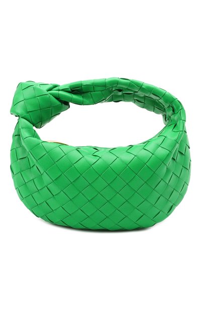 Сумку Jodie выпускают в разных оттенках и размерах. Например, для этой небольшой модели из осенне-зимней коллекции Дэниел Ли выбрал сочный зеленый цвет (дизайнер дал ему название Parakeet). Аксессуар с характерным крупным узлом на короткой широкой ручке сплели в фирменной технике intrecciato из мягкой шелковистой наппы. Такой прием добавляет изделию объем, а материал делает его особенно приятным на ощупь.