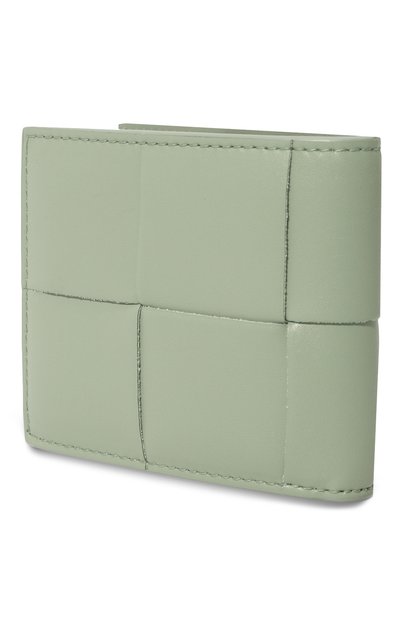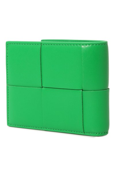 Прямоугольное портмоне выполнили вручную из широких полос матовой гладкой кожи, переплетя их в старинной технике intrecciato. Внутри ‒ два отсека для банкнот, разделительный карман на молнии, в котором удобно хранить монеты, и двенадцать слотов для пластиковых карт.