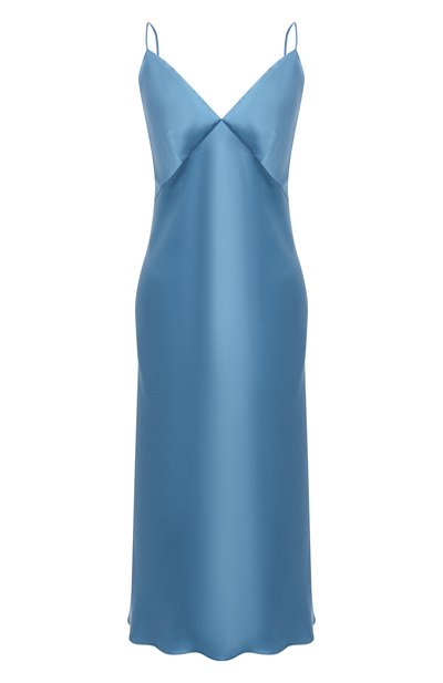 При создании голубого платья-комбинации из весенне-летней коллекции Оливия фон Халле сделала ставку на материал. Мастера марки сшили модель с узкими бретелями из ультратонкого шелкового атласа плотностью 19 момми. Такая ткань мягко струится и почти не ощущается на теле.