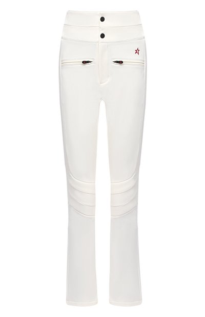 На создание белых брюк из весенне-летней коллекции дизайнеров марки вдохновили лыжные модели 1960-х. Для пошива расклешенной вещи мастера бренда использовали плотный матовый нейлон, который отталкивает влагу и защищает от ветра. Для удобства изделие дополнили глубокими молниями сзади и эластичной отделкой на коленях.