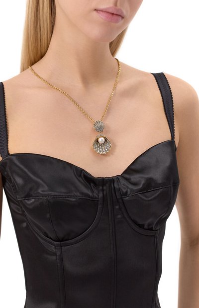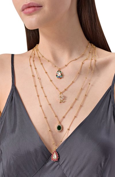 Лаконично длинное колье можно оригинально обыграть, закинув его на спину. Для изготовления аксессуара мастера марки использовали легкое гладкое серебро 925 пробы. Материал покрыли тонким слоем золота, чтобы придать украшению мягкий глянцевый блеск и защитить его от царапин.
