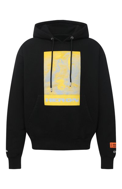 Черное худи из коллекции сезона весна-лето привлекает внимание желтым рисунком, на создание которого Херона Престона вдохновили картины Джона Джеймса Одюбона. Декор дополнили брендированным патчем и вышитыми надписями «стиль». Модель со спущенной линией плеч выполнили из плотного, но при этом мягкого хлопкового трикотажа.