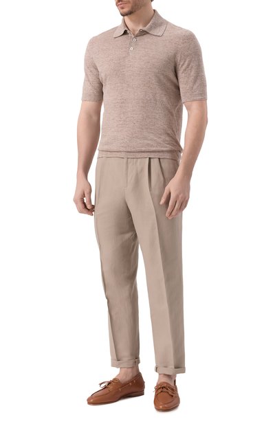 Поло из льняного трикотажа с добавлением хлопка может стать основой повседневных образов любой степени сложности. Модель застегивается тремя перламутровыми пуговицами.