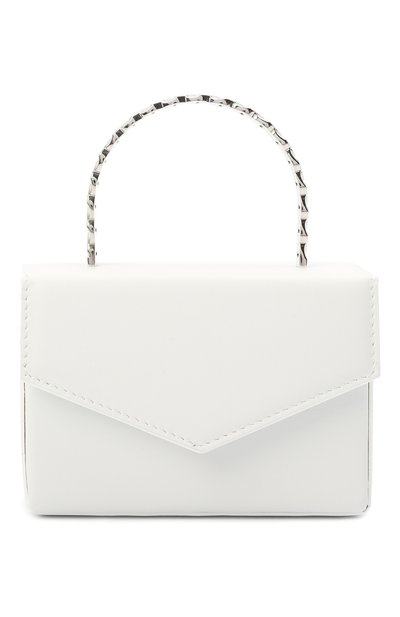 Отличительной особенностью линии сумок Pernille Super стала фигурная металлическая ручка, которая напоминает цепочку с крупными звеньями, усыпанными прозрачными кристаллами. Блеск такого декора у белой модели из весенне-летней коллекции Амина Муадди поддержала отделкой на эмблеме бренда. Изделие сшили из плотной матовой кожи.