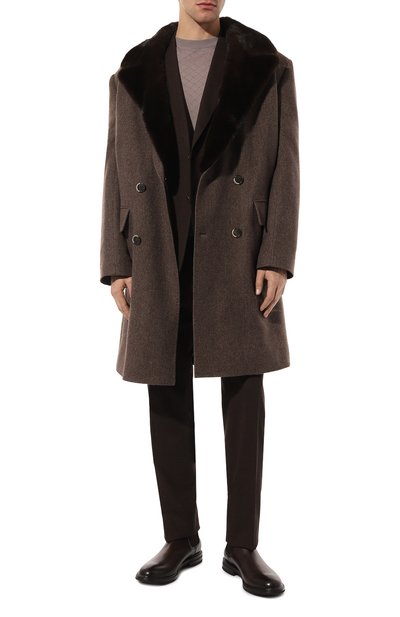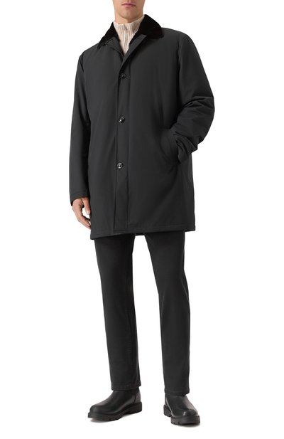 В этом коротком пальто дизайнеры марки умело объединили элегантность и комфорт. Строгий крой позаимствовали у пиджака, а для пошива выбрали шерсть викуньи, которая не позволит замерзнуть или перегреться в переменчивую погоду. Руно вручную очистили от жестких волокон, сохранив лишь нежный пух в пять раз тоньше человеческого волоса. Модель цвета дождевых туч представлена эксклюзивно в ЦУМе.
