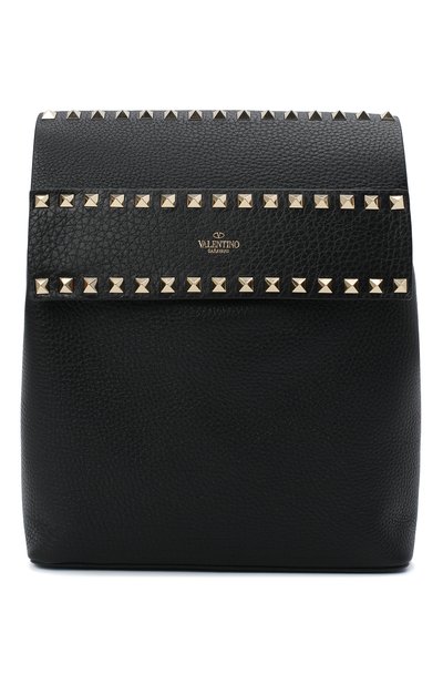 Черный рюкзак Rockstud из весенне-летней коллекции — в одинаковой степени практичный и модный аксессуар. Для пошива модели Пьерпаоло Пиччоли выбрал мягкую и при этом прочную зернистую кожу с матовым блеском. Детали изделия украсили рядами знаковых для бренда, основанного Валентино Гаравани, шипов-пирамид.