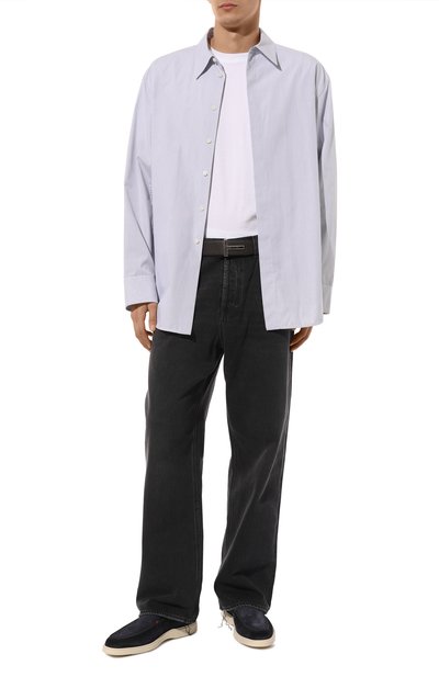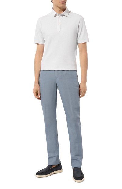 При создании слипонов Джузеппе Сантони сыграл на контрасте темно-синего верха и белой широкой подошвы, как у кедов. Для изготовления модели с рельефным швом, подчеркивающим форму мыса, и кисточкой на союзке, как у лоферов, использовали мягкую кожу с мелким зернением. Пару дополнили чипом с технологией NFC.