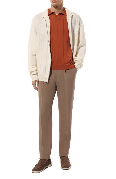 Универсальные чиносы окрасили в готовом виде, поэтому цвет получился более глубоким. Комфорт в течение дня обеспечивает эластичный габардин из длинноволокнистого хлопка пима, не уступающего в легкости и прочности шелку. Модель идеально садится по фигуре и не сковывает движения.