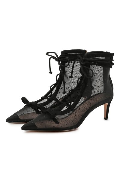 Ботильоны Bootie даже самый простой образ total black выведут на новый уровень. Верх из полупрозрачного тюля в горох делает модель визуально легче, а позаимствованная у корсета шнуровка не только отвечает за идеальную посадку по ноге, но и подчеркивает изящный подъем. Обувь на невысоком тонком каблуке вошла в весенне-летнюю коллекцию.