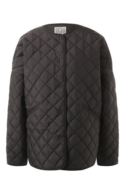 Стеганую куртку с удлиненной спинкой, круглым вырезом и прорезными боковыми карманами сшили из влагостойкого переработанного полиэстера. Модель на синтетическом утеплителе из вторичных волокон застегивается кнопками.
