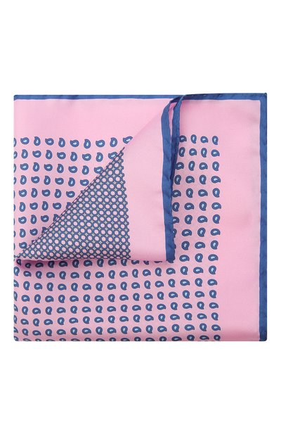 Розовый нагрудный платок входит в число тех аксессуаров, которые автоматически делают образ с классическим костюмом элегантнее. Аксессуар с мотивом, в котором объединили геометрический паттерн и узор пейсли, изготовили из тонкого шелкового твила. Этот материал практически не мнется и легко драпируется.