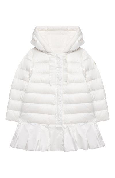 Мастера марки сшили белоснежную куртку из гладкого прочного нейлона. Материал отталкивает капли влаги и не продувается, а дополнительную защиту от ветра обеспечивает штормовая планка. Тонкий слой гусиного пуха и пера поддерживает комфортную температуру и не сбивается при чистке.