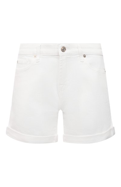 В коллекцию сезона весна-лето вошли прямые шорты из мягкого прочного денима. Благодаря эластановым волокнам в составе ткани модель с классической посадкой особенно хорошо садится по фигуре. Универсальный белый цвет подружит очищенную от декора вещь и с разноцветным худи, и с однотонной футболкой.