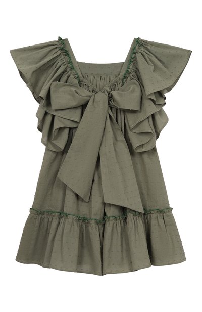 Платье насыщенного фиолетового оттенка сшили из мягкого хлопкового пике. Приятный на ощупь трикотаж с шелковистой текстурой хорошо пропускает воздух, а свободный крой и характерное плетение нитей, делающее материал эластичным, не ограничивают движения. Модель с отложным воротником и короткой пуговичной планкой, как у поло, дополнили широкой оборкой на подоле.